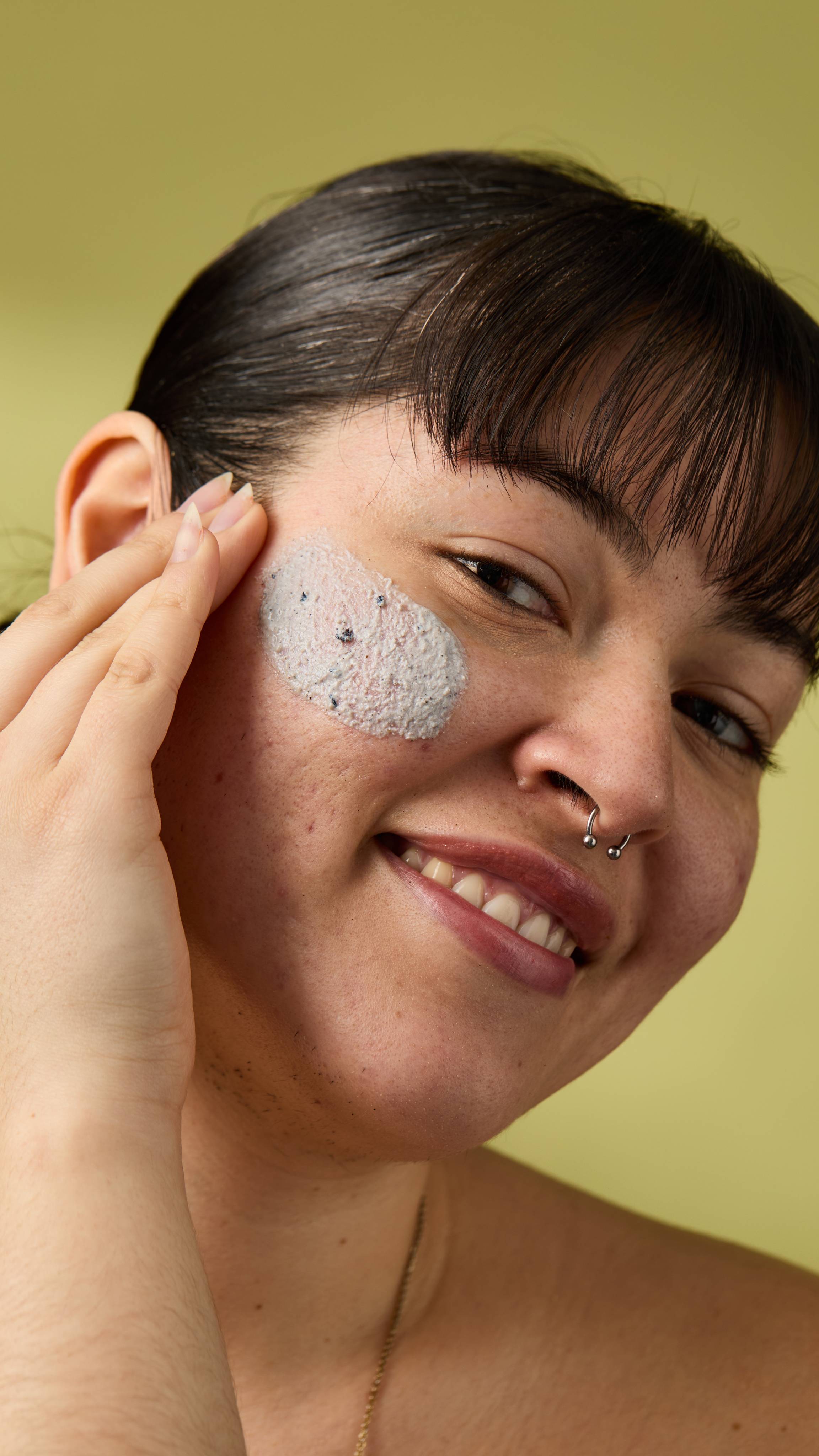 A bunch of antioxidant-rich blueberries, calming calamine and balancing juniper berry oil for a happy, glowing complexion. Creamy coconut yogurt and aloe vera leave skin so deliciously soft, you’ll look good enough to eat.
